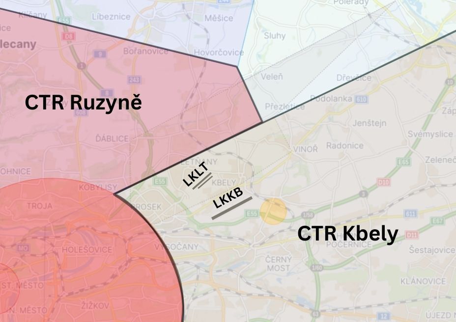 CTR Kbely - Potřebuju (nejpozději 3 minuty před vstupem) povolení od řízení letového provozu. Konkrétně od stanoviště Kbely Věž na frekvenci 120,880.